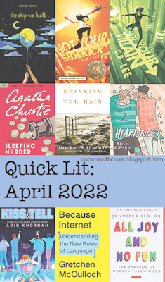 All Joy and No Fun: The Paradox of Modern Parenthood by Jennifer Senior: This was an engaging and highly validating book on parenting told through a combination of interviews and studies that have been done throughout the years. Rather than focusing on "how to" parent, Senior is more concerned with how we do parent and what meaning we make of that. Recommended for both current and aspiring parents!